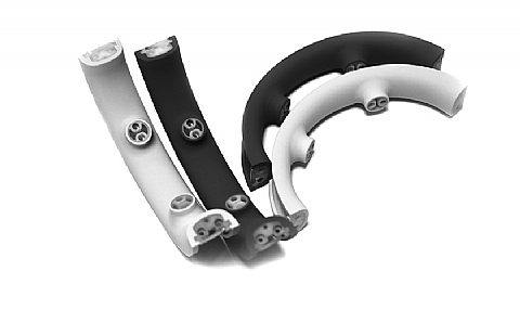 擠出機頭也是產品的截面形狀,有一定長度,在力與溫度的作用下,機頭出來產品經過高溫硫化成型。此工藝成型的產品一般是條形的產品,產品截面可以各種各樣。譬如,矩形長條,環形硅管,等.